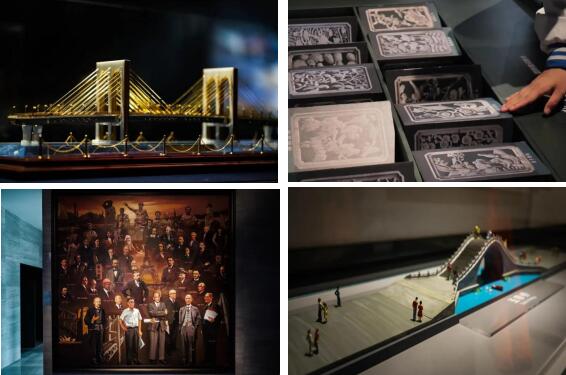 桥是路的连接,伴随着人类的行走、开拓而产生,看到熟悉的赵州桥、卢沟桥等,同学们不禁回想起课上所学的拱桥、梁桥、悬索桥等知识,感叹古人的智慧与探索。来到武汉长江大桥建设的再现展示区,同学们仿佛置身当年如火如荼的建设场景,大桥建设者使用的铆钉风枪、大桥建设时的各种初步手稿和设计图、大桥通车后风靡一时的邮票和明信片、刊发大桥通车消息的报纸……一件件实物、一张张图片,同学们深切感受到当时建桥的艰辛,真正了解了什么是工匠精神。