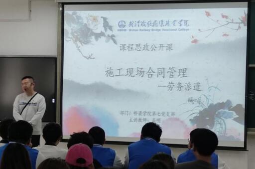 为了推进“课程思政”教学工作切实落地,有效提升专业课程教书育人功能,同时发挥好党员的示范带头作用。5月18日下午,在J1103院第七党支部开展以“课程思政”示范公开课为主题的党日活动。本次公开课党员高明老师向桥梁工程系专任教师进行了《施工现场合同管理—劳务派遣》的课程思政公开课展示,充分发挥示范引领作用。