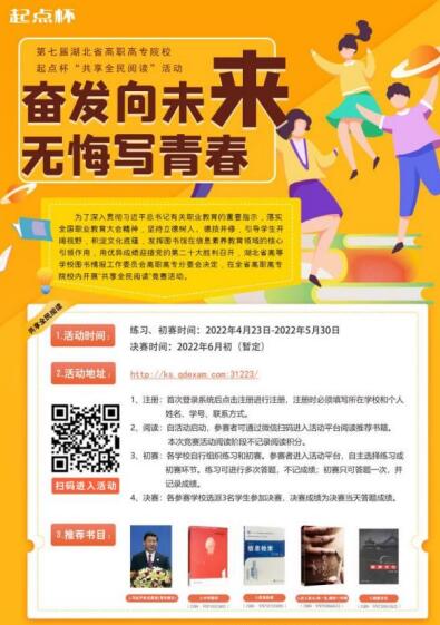 为了深入贯彻习近平总书记有关职业教育的重要指示,根据《高等学校数字校园建设规范(试行)》开展信息素养教育的总体要求,落实全国职业教育大会精神,坚持立德树人、德技并修,发挥图书馆在信息素养教育领域的核心引领作用,我院图书馆决定开展以“奋发向未来 无悔写青春”为主题的“共享全民阅读”竞赛活动,引导学生开阔视野,积淀文化底蕴。