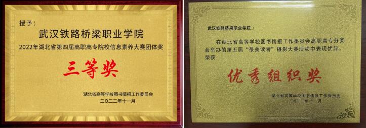 (文:郭艺琳/图:盛丽美)近日,图文信息中心积极组织学生参加各类省级比赛并荣获奖项:在湖北省第四届高职高专院校信息素养大赛中获团体三等奖,在第五届“最美读者”摄影作品大赛中获优秀组织奖。