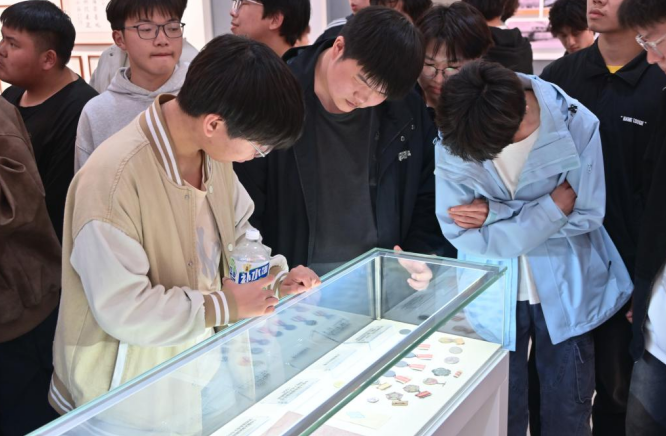 随后,同学们怀着崇敬之情,认真参观了铁道兵第一师战士们曾经使用过的武器、工具,以及青藏铁路通车纪念等珍贵实物。这些展柜里的老式测量仪与数字孪生技术模型看似相隔世纪,但追求卓越的匠心从未改变。从铁道兵创造的“人字形”展线技术,到智能桥梁的BIM协同建造平台,创新始终是两种精神传承的核心密码,推动着中国“开路”事业不断迈向新的高峰。
