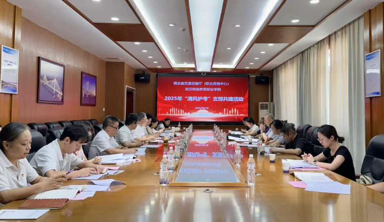 (通讯员:张智)8月18日,湖北省交通运输厅职业资格中心与学校培训中心党支部在众德楼605会议室联合开展“清风护考”支部共建活动。省交通运输厅职业资格中心党支部书记、主任刘江,副主任张岚;学校党委书记王春、副校长彭毅出席指导,双方相关党员参加。