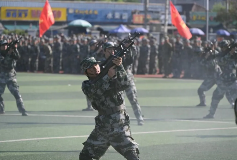 汇报表演环节亮点纷呈:分列式方队步伐铿锵,尽显青春昂扬风采;匕首操方队身姿灵动,招式凌厉;刺杀操方队突刺如电,杀声震野;擒敌拳方队呼喝震天,拳风刚猛;战术方阵则矫健敏捷,卧倒匍匐,赢得现场阵阵掌声。