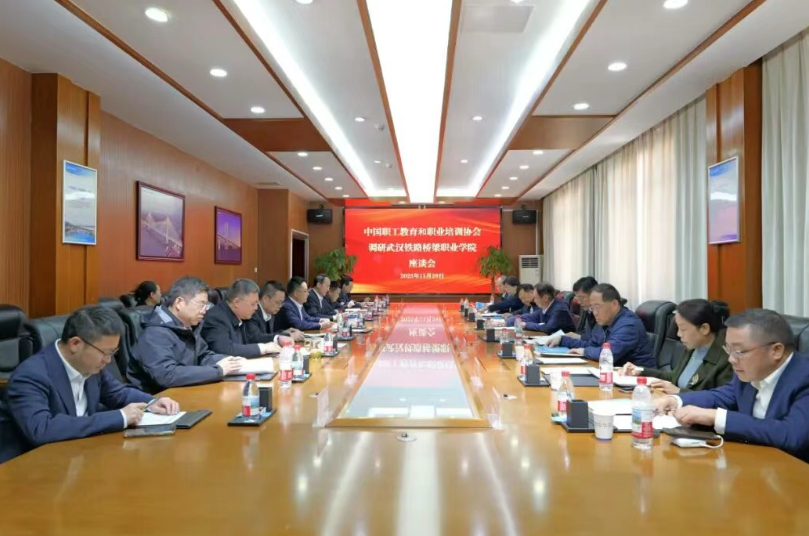 中国职协监事长胡驰、副会长王瑞、副会长刘杰湖北省人才中心技能人才服务处处长宋先桃、湖北省人社厅职业能力建设处二级调研员刘华平,中铁国资副总经理张劲枫,董事会秘书、办公室主任黄河、总经理助理、职教部(培训事业部)部长闫永峰,学校校长、党委副书记黄梦煜及其他领导班子成员、相关部门负责人陪同调研。