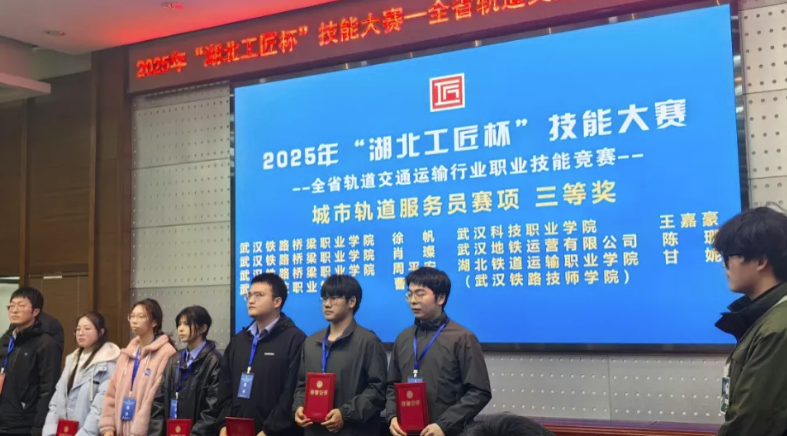 (通讯员:黄栋)12月6日,2025年“湖北工匠杯”技能大赛全省轨道交通运输行业职业技能竞赛在湖北武汉落下帷幕,学校铁道运输学院三名学生在城市轨道交通服务员赛项中,荣获三等奖3个。