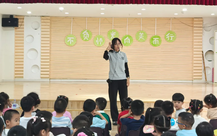 (通讯员:林文文)为响应第28届全国推广普通话宣传周活动的号召,9月19日,学校通识教育学院副院长周雯,教师林文文、刘昭祎走进汉南区纱帽街道兴城社区圣特立小太阳幼儿园,为大班小朋友带来一堂趣味普通话推广课,以实际行动助力乡村语言文化建设。