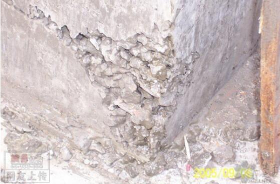 (3)洞口、坑底模板无排气口,混凝土内有气囊。