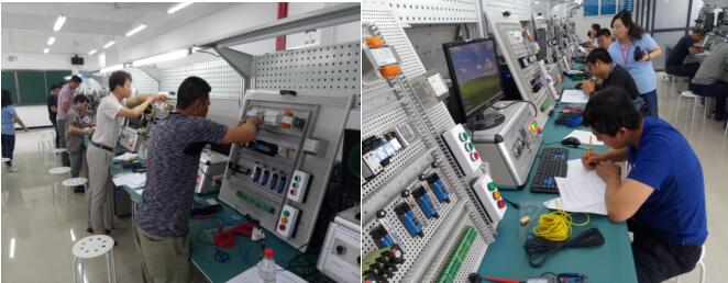 我院机电工程系承担了本次技能大赛电工理论和实操考试的组织工作。电工理论涵盖PLC、电力拖动、室内布线、变频器、电子以及临时用电等科目,着重考察了相关知识点的运用,实操环节从工艺以及规范方面考察选手的操作水平。为圆满举办此次大赛,机电系、鉴定站与上海局密切配合,精心筹划,积极准备。从实操赛场元器件的配备,到理论赛场的有序安排;从校园环境的氛围烘托,到后勤细心周到的服务,让每一位来到我院参赛的选手都感到积极向上、以人为本的竞赛氛围,体会到我校组织工作的井然有序。