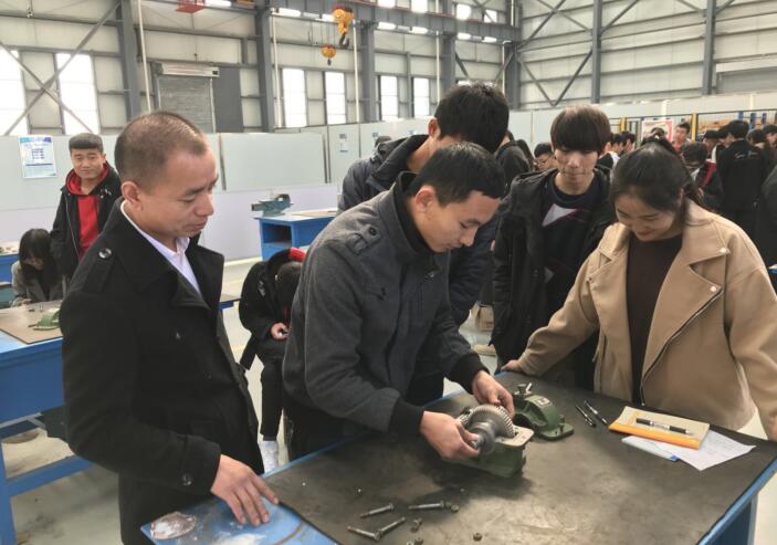 减速器的测量同样安排在实训工厂,不同于昨天的是,每个小组都发了一把游标卡尺。在指导老师的带领下,同学们完成了对减速器中每个零件的测量。在讲解过程中,老师鼓励学生们认真测量每一个零件,培养耐心细致的工作作风和严肃认真的思考态度。