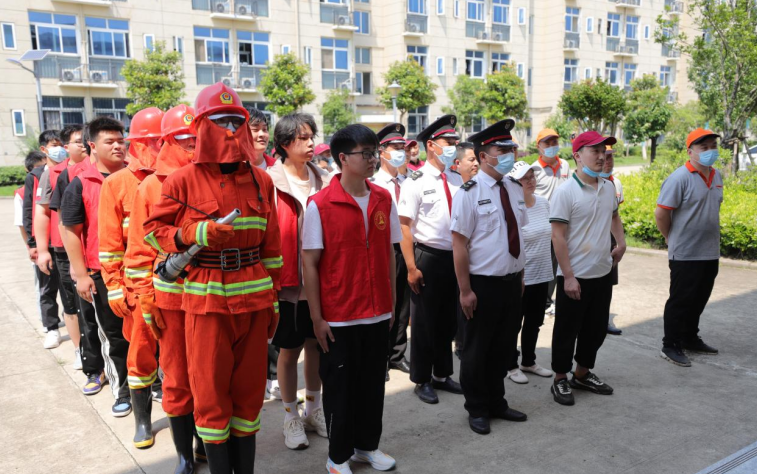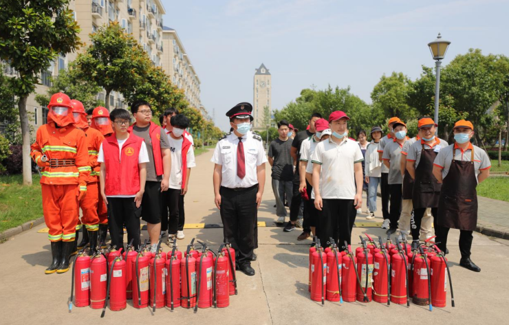 此次消防演习由保卫部长杨伟主持,安保员、宿管员、食堂员工以及学生义务消防队员等40余人参加。