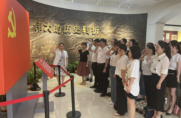 在纪念馆里,全体党员重温入党誓词,以坚定有力的宣誓声,表达不忘初心、牢记使命的信念和决心。随后,讲解员一边现场解说一边带领大家依次参观 “风云突变”“力挽狂澜”“星火燎原”三个历史篇章的相关史实资料及历史物品陈列,深入学习“八七会议”的精神以及带来的深远影响。