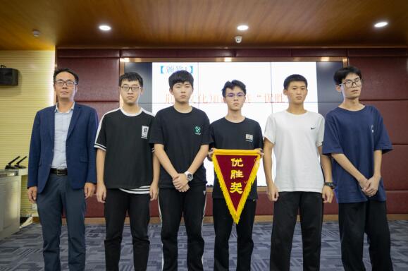 公共课部主任王世均(左一)给知识抢答获胜的22级机电1班颁奖