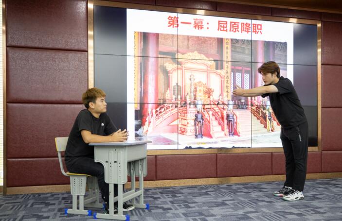 王敬洋、魏柏平为观众示范楚国时代的见面礼仪。