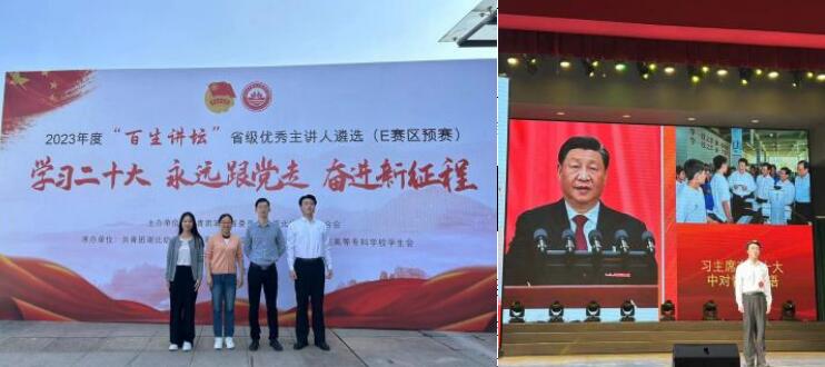今年5月,团省委、省学联下发了《关于在全省高校团学组织中持续深化“百生讲坛”——学习宣传贯彻习近平新时代中国特色社会主义思想活动的通知》,经过初选,李宇航同学代表学院参加2023年湖北省“百生讲坛”省级优秀主讲人预赛(E赛区),他是我院第一位走进省赛的优秀主讲人。在湖北幼儿师范高等专科学校比赛现场,他热情饱满、慷慨激昂地讲述了他的同学潘翔抗疫的先进事迹,获得了在场观众雷鸣般的掌声。