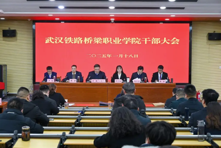 会上,党委书记王春主持会议并讲话,他代表学校领导班子进行述职,代表学校党委向大会报告了2024年度干部选拔任用工作情况,全面回顾了2024年学校选人用人开展情况,通报了巡察反馈意见整改落实情况,并提出了学校存在的主要问题和不足,明确了下一步的努力方向和工作措施。他指出,在中铁国资党委的正确领导下,学校以“六有桥院”建设目标“一面旗”为引领,着力培养忠诚干净担当的高素质干部队伍,助推学校高质量发展。