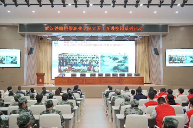 讲座现场,秦环兵以自身成长经历为脉络,向师生诠释工匠精神的真谛,重点讲述技术创新与精益求精的实践:将索道管定位时间从3小时缩短至半小时,研发测斜智能工装、北斗吊装指挥系统等11项发明专利,创经济价值数百万元,推动桥梁测量从“人工操作”向“数智化监测”跨越。作为工作室负责人,他通过“每周试题闯关、每年技能大赛”等“五个一”培训机制,培养100余名测量技术骨干15名项目负责人,47人次获省部及行业荣誉,让工匠精神薪火相传。
