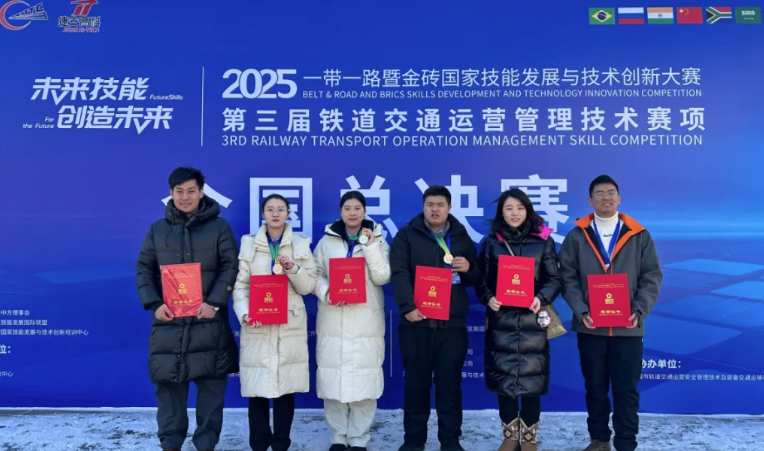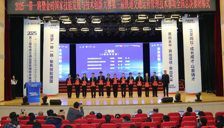 (通讯员:黄栋)12月5日,2025年一带一路暨金砖大赛第三届铁道交通运营管理技术赛项全国总决赛在哈尔滨铁道职业技术学院圆满落幕。学校铁道运输学院参赛队同来自全国40余所院校的参赛队伍激烈角逐,凭借扎实的专业功底与顽强的拼搏精神,荣获铁路接发车作业模块学生组团体二等奖、优秀指导老师奖、优秀组织奖。