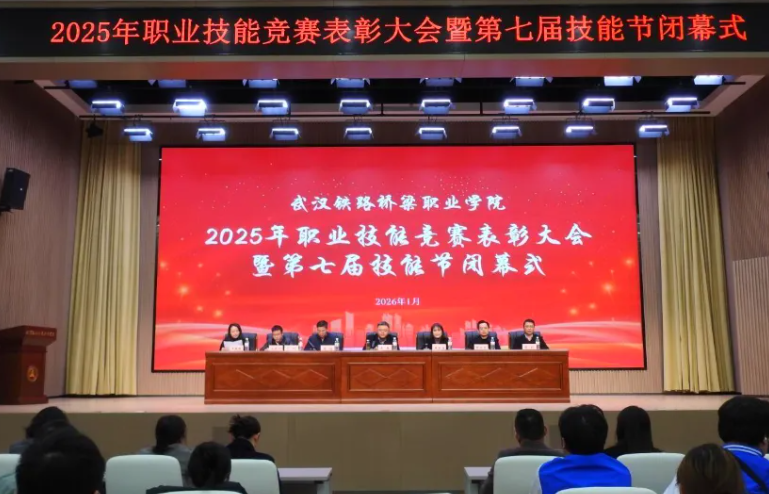 (文:凌菲菲/图:学生记者团 实习记者 李易承 陈妍凝)2026年1月9日,学校2025年职业技能竞赛表彰大会暨第七届技能节闭幕式在学术报告厅举行。党委书记王春,校长、党委副书记黄梦煜及全体领导班子成员出席仪式,副校长卢刚主持仪式,获奖师生、相关部门负责人及全体专任教师参加仪式。