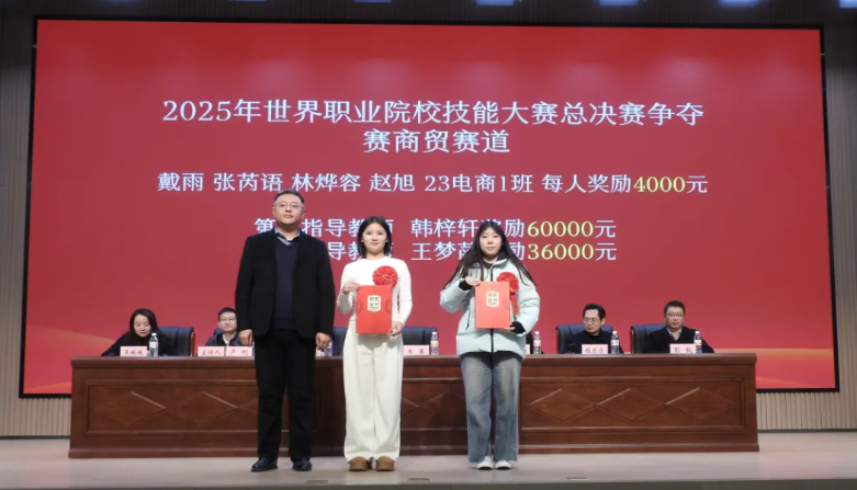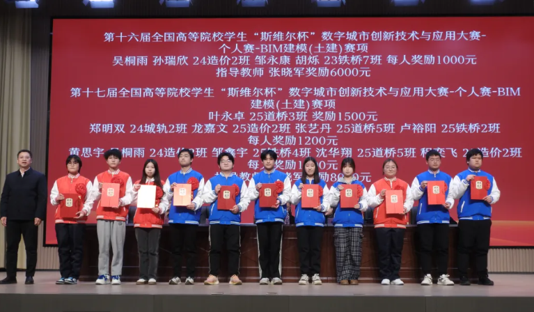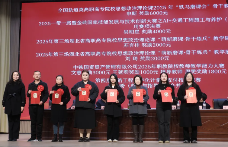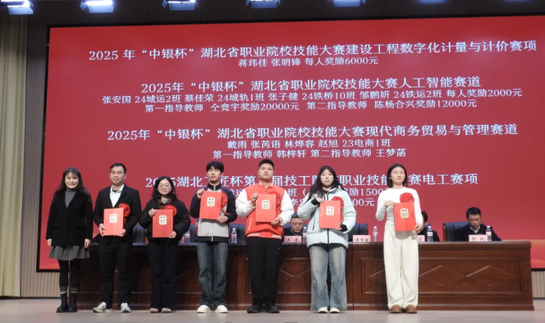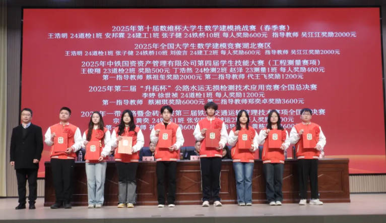 会上,党委副书记、纪委书记、工会主席周焕,副校长程乐乐分别宣读2025年校级以上各类技能大赛及第七届技能节获奖表彰决定。校领导分别为获奖师生颁奖并合影留念。