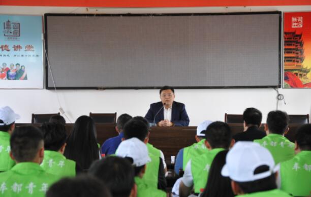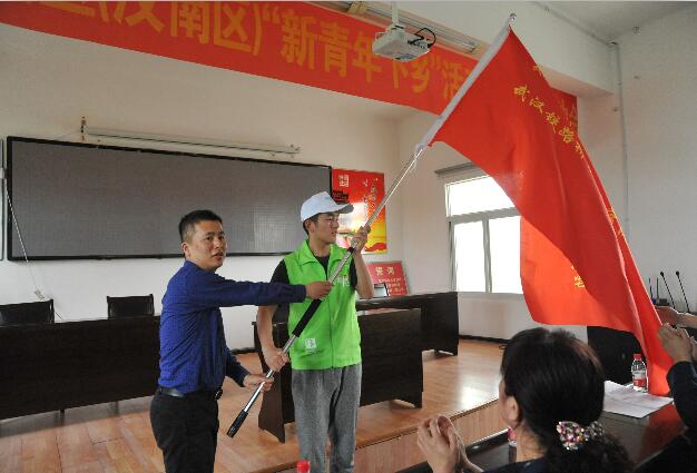 启动会上,皮主任首先介绍了东荆街整体情况,希望各村大队高度重视“新青年下乡”活动;接着,我院王院长特别对参加“新青年下乡”的大学生和青年教师提出了四点希望:一是院团委要将此项活动作为高校思想政治工作的重要组成部分;二是对于农民群众的所思所想,要服务精准、以心换心;三是学生要走出学校象牙塔,积极走进社会大课堂,投身实践大熔炉,增长阅历;四是安全即一切活动的前提和根本保障。希望青年大学生与青年教师做好安全防范工作。最后,团区委书记杨加为我院“新青年下乡服务队”授旗,并鼓励大家“努力学、加油干!”