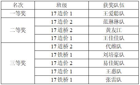 本次竞赛面向17级工程造价、建设工程管理、铁路桥梁与隧道工程技术和道路桥梁工程技术四个专业,来自12个班级32支队伍近百人参赛。辅导老师将招投标知识大致分为“招标”、“投标”与“开评标”三个模块对学生进行了培训辅导,让参赛选手对课堂所学招投标知识有了系统的认知以及更深层次的理解,起到了延伸课堂教学、巩固专业知识的作用。